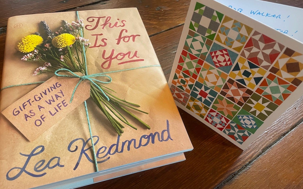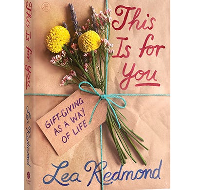I got a nice surprise gift the other day: a copy of This Is for You: Gift-Giving As a Way of Life, by writer/artist Lea Redmond, billed as a “jubilant manifesto” on giving (and receiving). I love gifts as a subject, possibly because I have a very mixed record as a gifter, and I always want to get better. So I was excited to explore Redmond’s thoughtful and helpful take on the subject.