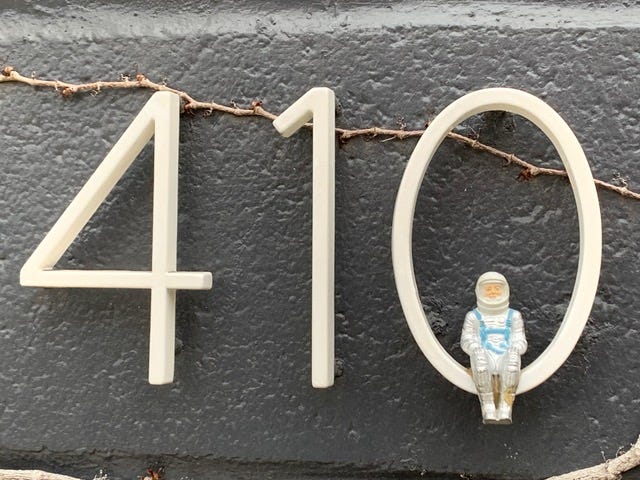 One last note on the Small Idea post. “I’m a fan of seeing the world in the company of little ones,” Rebecca H. writes, sending along the pic below. “This is actually a little guy I noticed while out on a walk in Brooklyn in the Covid Days. I’m not sure if he always resided there or was just visiting the 410 sign but he brought me such joy.” Us too, Rebecca. Thank you!