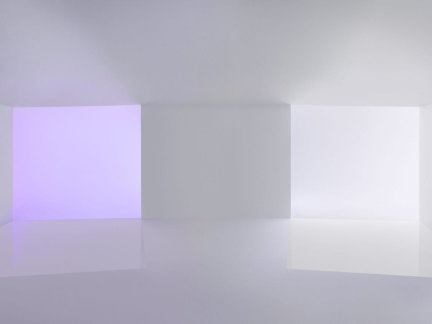 “[The] installation begins with two large ‘portals’ that visitors step through into a large room without corners, objects or shadows. .... I watched the light shifting in slow gradients: dusky lavender turned into pearled white and then into a soft, horizon-like blue. ... Gradually, I noticed my breathing changing, and I felt a sense of stillness arrive as if it had been waiting for me behind a door. It seemed the room itself had quietly lowered the volume of my nervous system.”